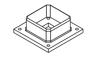 Še primer prirobnica primerna za steber ograje 75x75 mm z posnetimi robovi.